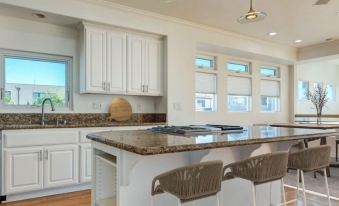 The reverse floor plan has an open-concept living area on the top floor with lots of windows and natural light. There are three bedrooms, all with in-suite bathrooms and an office with built-in oak cabinetry and workspace. The third bedroom on the ground floor can also be used as a guest suite with its own kitchenette and patio.About pets:Pets allowed: less than 50 lbs per pet (limit one pet total).About children:Children allowed: ages 0-17.About smoking:Smoking is not permitted.About events:Events allowed: family gatherings and birthday parties.Maximum event attendees: 20.