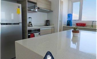 Living room with large balcony overlooking the sea that runs from the kitchen to the master bedroom