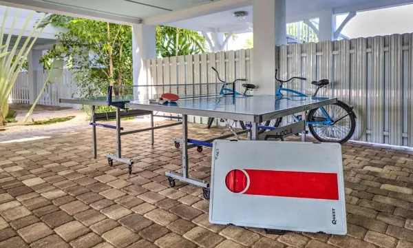 The ground level boasts the private pool with optional heating (additional fee), covered hot tub, additional seating, lounge chairs, a canopied day-bed, beverage refrigerator and a gas grill all within a fenced-in yard. There are also bicycles and an outdoor ping pong table for your enjoyment. The Coral Cove is situated directly next to the path leading to the community dock. The house includes a bait freezer and 36 feet of lighted dock space with fish cleaning tables and whips for added protection for your boat. After fishing, take a stroll to the waterfront gazebo on The Tides property and marvel at what we call the Florida Keys lifestyle.