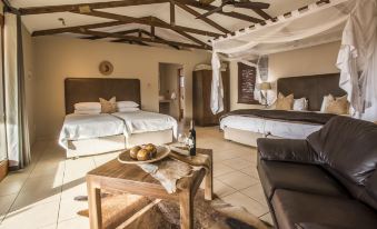 We stayed at the beautiful located camp side (own Braai place/ bathroom/ electricity) under a tree with weaver birds. We were invited for high tea in the afternoon and could also stay at the lodge's pool. I can highly recommend the place and also the cheetah game drive and sundowner. Stunning!