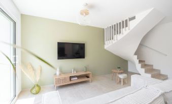 - Air-Conditioned Living Room and Kitchen: A spacious, bright living area with generous openings, and a modern kitchen opening onto a sunny covered terrace, perfect for relaxation and convivial moments.