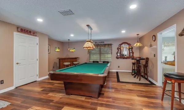Tranquil main home sits down long lane away from traffic noises surrounded by farmland. 2600 sq. foot home decorated with horses in mind. Very cozy lay out. One living area hosts a pool table for your enjoyment. 2 separate living areas both with large screen smart tv's. Master bedroom has tv. Large eat-in kitchen and dining room for extra people. Carport available for cars only ( some trucks probably wouldn't fit under). Large front patio with gas fire pit complete with adirondack chairs, another table with chairs and day beds with umbrellas. Water on farm is conditioned and complete water system installed with water softener. (no rusty yellow water here!!) Farm can accommodate semi-trailer and large horse trailers. Farm has 5 separate RV hook up (30 and 50 amp available) both situated where camper or trailer can be in shade. Rv hook ups have electric, water and septic. Please inquire about prices for RVs. Large turfed riding area with lighting. Round pen available for use. Horse guests have stall space if needed with shavings included. Seven separate turnout paddocks available.