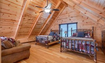 Large loft with seating area and 2 queen beds