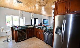 We arrived a little early, and the host allowed us to take advantage of the dock prior to our check-in time. The teenagers were able to jump right in and begin snorkeling around the dock. The house was exactly as described, and fit our group of 12 perfectly. We cooked in the kitchen every morning and night, and found all that we needed. All in all, the perfect spot for our group as we enjoyed all the cays close by via boat.