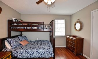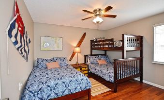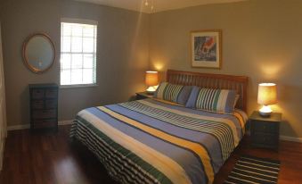 There are two spacious bedrooms. One has a new king size bed and the other has a new full size bed and one new twin over full bunk bed. Comfortably accommodating six guests.