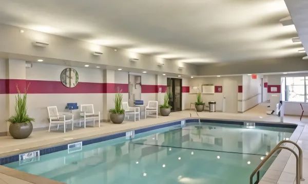 Youll enjoy access to a 24-hour business center, a heated indoor pool, outdoor lounge area, a unique fitness/laundry facility designed to save time, and our Home2 MKT store thats always open. Hot drinks are also available any time in the Coffee2 Tea area. If you bring little ones, we provide highchairs and cribs too.