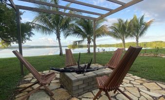 Outside, the villa has a manicured outdoor space with a lush lawn overlooking the lagoon where resident dolphins and manatees are regular visitors! You’ll love the tiled veranda just steps from the water with its comfortable patio set, lounge chairs, relaxing hammock, and gas grill. There’s even a custom made fire pit, perfect for roasting marshmallows and taking in the star-filled skies.