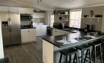 Lovely designed lake home. Features breathtaking lake views and a private dock. Open floor plan with modern kitchen. The spacious deck provides a beautiful seating and outdoor setting. Master with master batch and 2 additional bedrooms with a full bath. Both bathrooms feature showers. Outdoor Grill provided. Enjoy fishing or swimming in the cove. Washer and dryer available. Kayaks available for extra. Nearby boat ramp allows you to keep your boat conveniently at the dock.