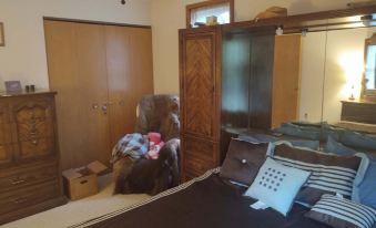 Room 2: This bedroom has a double size bed and a small Juliet balcony that overlooks the land.