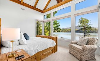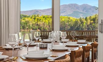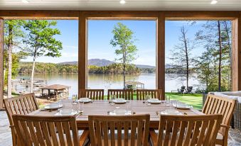 This breathtaking retreat offers mountain views on the lakefront of Lake James, complete with a private dock and endless activities for the whole group and family.