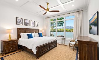 ☀ Bedroom #2: Another master king bedroom with a private ensuite shower, offering comfort and privacy with stunning views. This room also is designed with handicap accessibility in mind, featuring a wheelchair-accessible vanity sink and a zero-entry shower with a grab bar.