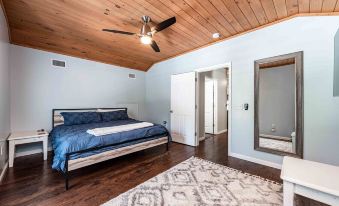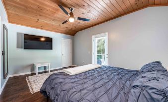 Inside there are 3 bedrooms...2 downstairs & the primary upstairs. 2 King beds, 1 Queen. Loft area can also accommodate an air mattress for additional guests. There are 2 standup arcade games in the loft, NBA Jam & Marvel vs Capcom/X-Men. Electric fireplace in living room. 3 Amazon Alexas located throughout the home for music.
