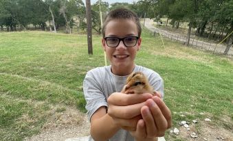 We have cattle, chickens and miniature donkeys. Let us know and we can give you some feed for the animals. There is a pond on the property-we are not responsible for accidents. NO swimming!About pets:No pets allowed.About checkOut:Check out before 11:00 AM.About children:Children allowed: ages 0-17.About checkIn:Check in after 3:00 PM.About smoking:Smoking is not permitted.About minBookingAge:Minimum age to rent: 21.About events:Events allowed: family gatherings, birthday parties, weddings.Maximum event attendees: 20,At an additional cost of $75.00.