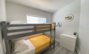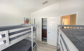 4 bedrooms: 3 bunk beds 1 queen bed and 1 king bed