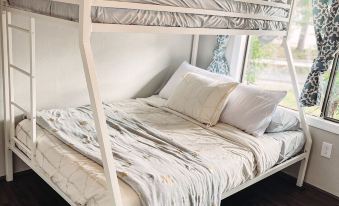3 bedrooms: 2 bunk beds 1 single bed 1 queen bed and 1 king bed