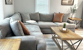 Once inside you'll enjoy a comfortable environment full of warm, natural light. On the main floor you will find a bedroom with a queen size bed, a bathroom, and a playroom with two chairs that convert to twin beds, a desk, and card table and chairs stored in the closet. The main floor also offers an inviting living room which is open to the kitchen. The laundry is located in the hallway. On the second level of the home there is a second bathroom, a bedroom with king size bed and xl dog crate, and a bedroom with two twin xl beds. This home is equipped with high-speed internet and has 2 smart TVs.About pets:Pets allowed: dogs (limit 2 total).About children:Children allowed: ages 0-17.About smoking:Smoking allowed: in designated areas.About events:No events allowed.