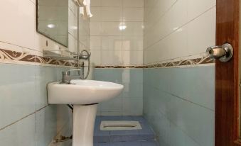 我在網上預訂的是兩個一米二床的房間,老闆根本沒有細看我定的什麼房間就接了單,我到了以後沒有雙床房衹給我一個一米五的大床房,不住也不給退房費,我衹能將就住了,進屋發現一個縣城裡98的房間里居然沒有24小時熱水,衞生間裏燈光昏暗,還是蹲便,一百年前的洗手盆,一個老掉牙排風機發出刺耳的尖叫,屋裡有蚊子且不給預報蚊香,我發的照片是手機曝光度高,衞生間裏實際上要昏暗的多,o總結一下奉勸各位網上訂房的朋友千萬別看商家上傳的房間圖片以免上當!