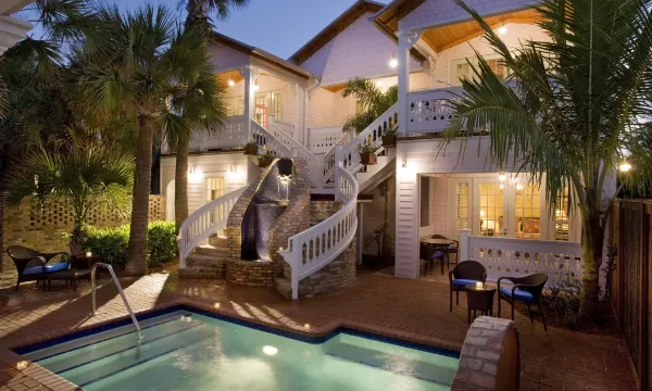 Great atmosphere. Room we stayed in was beautiful (Diane’s). The location is close to the beach and walking distance to a great steak house, a market, sport bar, two parks. The grounds were excellent. A small pool and a huge hot tub. Lots of complementary snacks. Highly recommend and will be back.