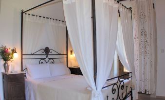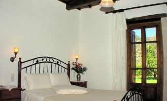 Villa Melitta is a noble house built by George Hatzidakis. He used all his research into traditional architecture and put all his love into the house. The project was finished in 2004. In the middle of a 5000 sq.m fruit grove, rises a small palace, reminding us of a Venetian villa. Melitta is situated just outside of the village of Melidoni, in a quiet environment with a broad and beautiful view of the Tallaia mountains and Psiloritis. There is a wide variety of trees in its huge garden – orange, olive, pear, apple, and peach trees – offering fruits throughout the year. There are also flowers and organically grown vegetables in the backyard of the house. The house covers 250 M2 and there are 5 bedrooms – 2 on the ground floor and 3 on the upper floor – which can accommodate 10 persons, or even 12 if you use the two sofa beds of the sitting room. It has a tasteful interior and there are two verandas on the upper floor, offering you a choice of the view you prefer.