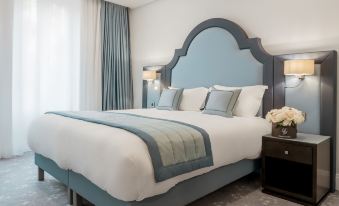 An excellent hotel in a great location. 2 mins walk to the beach and 10 mins walk to the old town. Everything about this hotel is of a high standard. The staff are polite, helpful and attentive. The pool is lovely and the breakfast is really varied and of a high quality. The building itself is fabulous with high ceilings and amazing chandeliers. I recommend a private transfer to and from the airport which can be organised by the hotel. It’s 120 euros but efficient and comfortable.