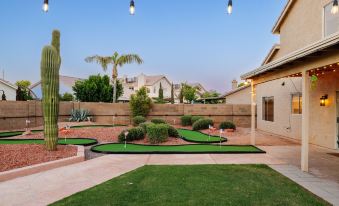 This beautiful home has all the amenities of a luxury resort except that it's all yours! 6 bedrooms and 3 bathrooms, it can sleep up to 17 guests (18 with the rollaway bed). The main floor has a huge open concept, making it easy to cook, dine, and sit with everyone. The spacious backyard has a unbelievable private swimming pool, and its own putting greens! Private gate on the property takes you right to beach volleyball courts, picnic and BBQ enclosures, an enhanced children’s playground, and a basket ball court! We supply enough consumables for your 3 day stay. Anything beyond three days, will be the responsibility of the guest to provide. All TVs in the home are smart TVs, and you can bring your own passwords to enjoy a variety of streamed entertainment.