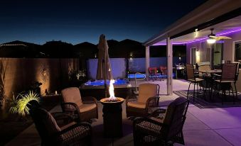 The best part of your trip will be to end your day from the golf course, or after a day of riding the trails in the beautiful and tranquil backyard. Relax and enjoy the sunset under the covered patio. You can BBQ, enjoy your dinner on the patio set, relax by the gas fire pit, play corn hole, or watch a movie while you sit in your own private hot tub! During the warm days, enjoy the brand new heated pool. Large pool to enjoy with your family and friends to cool off when it’s hot out.