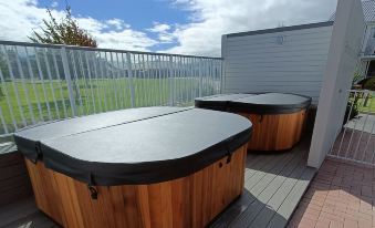 Enjoy the spa's, tennis court, children's play area, Bar B Ques & outdoor tables & chairs.