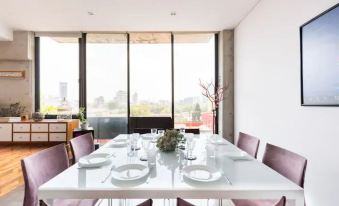 Cozy and quiet space into the urban ambient, the space provides a sensation of isolation. An interior to enjoy in peace while all amenities are being offered walking distance from here. The Escandon zone is well known to be a clasic urban neighbourhood with all equipments and services.