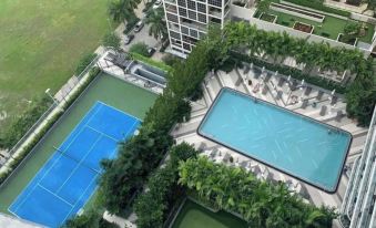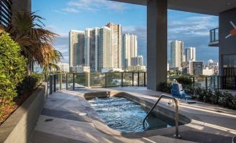 Enjoy Miami City skyline & Pool views (from a high-floor condo) on the balcony while drinking your coffee or sipping on wine. Amazing views from the living and bedroom. Great space for remote working.