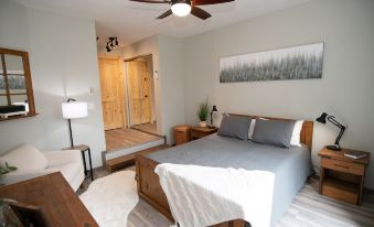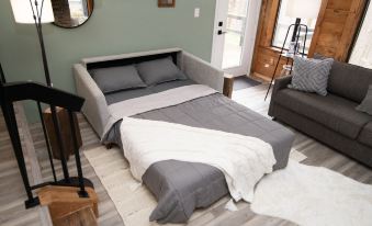 Cozy up with a movie in our queen bedroom at the end of the night or enjoy the electric fireplace in the living room. Need additional sleeping space? The living room converts into a versatile second sleeping area with one couch featuring a pull-out queen bed and the other expanding into a bunk bed! The kitchen table also expands for additional seating up to 6 with the included bar stools.