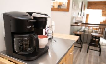 The kitchen at the condo is fully equipped for a night of cooking in, on the outdoor grill, in the convection oven, or on the stovetop. It also includes a microwave, blender, Keurig (K-cups of coffee and ground coffee INCLUDED), and coffee grinder with a full-size fridge and freezer for your convenience. Prefer to take a vacation from the kitchen? You’re just a short drive from area restaurants!