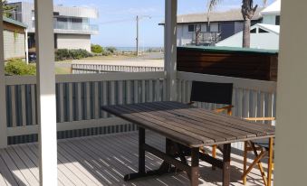 * There are three balcony areas. Downstairs rear balcony for undercover entertaining with sea views, and a front yard facing balcony also great for entertaining on windy days. A third balcony upstairs with ocean views is great for morning coffee or brunch.