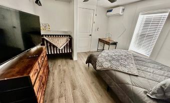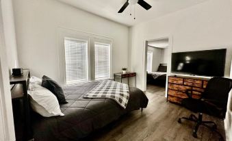 Enjoy modern comforts like WiFi, AC, a fully equipped kitchen, washer/dryer, and a charcoal grill. The bathroom is stocked with essentials, including a shower and hairdryer. Relax in the inviting living area with 50” TVs and complimentary access to Netflix, Hulu, Prime Video, Disney+, and ESPN+.
