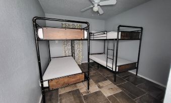 3 bedrooms: 4 bunk beds 1 queen bed and 1 king bed