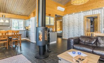 The rental villa Hapero is located on a wonderful hillside plot on the shore of the lake Kaitajärvi. On the sturdy pier, you can relax and enjoy the beautiful landscape while sitting on a bench. Inside the villa, a modern living room/kitchen awaits you, which is equipped with all the necessary equipment. The kitchen also has a wine cabinet where you can keep your drinks cool. The living room has a comfortable sofa and an entertainment system that includes a smart TV and home theater, so you can relax and watch movies with friends or family, there's enough work even for rainy days.
