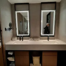 I have always liked Atour, from the double sinks to the wireless charging, every detail is perfect. The room is large, the bedding is very comfortable, free porridge and milk are provided at night, and the service is very good. The only drawback is that the room is quite hot and it takes a long time to turn on the air conditioner for the cold air temperature to drop down.