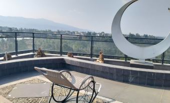 房子外有一個大陽台 可以欣賞風景。院子裡佈置的很漂亮 養了很多多肉。