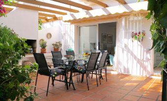 On the ground floor with access from the garden, it has a large living room with access to a porch with barbecue. The kitchen has all appliances, a large pantry and a large backyard with dining table. Both have furniture with tables with a minimum capacity for 8 people. There is a toilet on the ground floor.