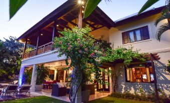 With four generously appointed bedrooms, each offering spectacular ocean views and en-suite bathrooms, AFIMI Beach House is designed for indulgence. Three upstairs rooms feature rich teak hardwood floors, split air-conditioning, and 50" HD LCD TVs, while the ground-floor bedroom offers easy access to the garden and beach. The villa’s décor harmoniously blends contemporary furnishings with authentic Jamaican antiques and artwork, creating a sophisticated yet warm atmosphere.