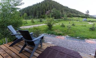 Sliding glass doors in each tiny house lets the space expand onto the porches where you can breathe in that fresh mountain air. Keep an eye out for birds, deer, fox, and other playful critters that pass by our dwelling. When the sun sets, experience the sky like you’ve never seen it before. With virtually no light pollution, the night sky reveals its true magnificence, unveiling a tapestry of twinkling stars that will leave you breathless.