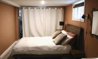 The loft is ideally located in the heart of the Rosemont neighborhood, close to all services and offering a rich and dynamic neighborhood life. It consists of three bedrooms and an open-concept kitchen overlooking the first living room and its wall-mounted Tv. Two bedrooms are located on the first level with a full bathroom. The split level allows for independent living spaces and for everyone to find quietude. The second living room with a flat-screen TV and the third bedroom are located in the half-basement. It offers windows on three sides as well as direct access to parking at the rear of the property. The private laundry room is also located in the half-basement and has a high-capacity washer and dryer.