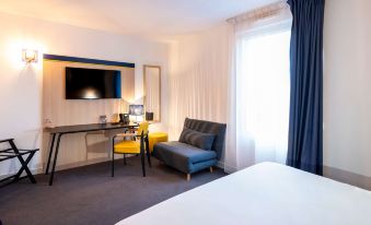 This hotel is just outside Morlaix at the airport. It is new construction, very clean, and has an excellent, welcoming staff. They are very attentive to your needs and are always watching to ensure their guests are satisfied. You can register for the "styles" side of the hotel, which includes access to the pool and sauna, breakfast, and, I believe, the rooms and bathrooms are more spacious, or opt to stay in the economy value side. They share the same reception and bar area. It is about an 8 minute drive to the middle of Morlaix and there is car charging available on site. I think it is an excellent value for the money.