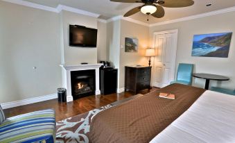 We had a great stay at Beach Bungalow Inn and Suites. The room was very nice and everything was clean. The bed was comfortable and we loved the window shutters and what looked like a recently remodeled, beautiful shower. The fireplace added a nice touch. This inn is within walking distance to the Embarcadero and to downtown. We had a lovely view of Morro Rock and were able to watch the sunset from the room each night. We would definitely stay here again.