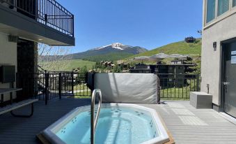 The wrap around deck spreads from the master bedroom, all the way around the dining area and living room with 3 separate entrances, all via full length sliding glass doors. The sheer quantity of windows in this condo make it feel like you are truly on the ski hill while sitting in the warmth of this gorgeous condo enjoying the Alpenglow on Mt. CB!