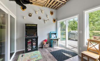We stayed with my siblings and all kids who ranged from 2 years old to 17. There was something for everyone here. Lots of games to enjoy inside and outside. Atv trails right on the property. Live band across the street at night. The cherry on top was the closeness to Chute Pond where we went kayaking, fishing, and swimming too. Also one of the cleanest Vrbo I’ve stayed in!