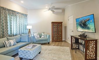 The TV room just outside the Master bedroom provides comfortable indoor lounging and relaxing in front of the large flat-screen Tv.