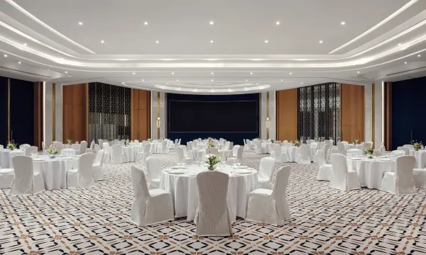 Stretching along a 360 meter beachfront, the esteemed St. Regis brand graces the shores of Oman's Sultanate, promising an unparalleled hotel experience. Establishing itself as the pinnacle of Muscat's accommodations, the St. Regis Al Mouj Muscat Resort boasts 250 guest rooms and suites that offer views of both the beachfront and the golf course. A plethora of leisure amenities enriches the guest journey at this luxury resort in Muscat, featuring an exquisitely situated swimming pool, a secluded sandy beach, an adjacent award-winning Golf Club, a luxurious Guerlain spa, and ten dining venues including COYA, Em Sherif, and Hakkasan, offering an extraordinary culinary journey. For a diverse range of gatherings and events, the St. Regis Grand Ballroom, spanning 1350 sqm provides state-of-the-art facilities. Divisible into three sections and flooded with natural daylight, it stands as an ideal venue for meeting planners. Ten additional nearby meeting rooms offer the perfect canvas for various MICE events.
