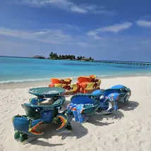 An excellent hotel for exploring the Maldives. We chose it as a worthy replacement for Turkey, because the prices there are becoming astronomical. This hotel is a wonderful combination of Turkish all-inclusive and Maldivian nature and hospitality. Excellent staff, there are many Russian-speaking employees, because most of the vacationers are Russian-speaking. There is everything for entertainment: tennis, table tennis, darts, basketball, billiards, sauna, karaoke, fire show, bird nursery, plant garden, children's club, etc. 2 types of sharks, stingrays, excursions to see manta rays and whale sharks (not guaranteed). In short, everything you need for a good vacation. Or you can just forget about everything and relax on a sun lounger near your room. The food is varied, the drinks at the all-inclusive are not bad. The staff is excellent, very helpful. We will probably come back again