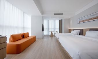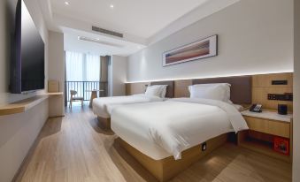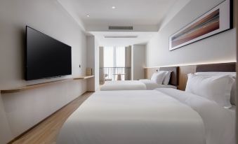 朋友一起三人自駕出行定的家庭房,酒店位置不錯,有地下停車場,出門走300米左右就有地鐵口很方便,前台服務熱情看見我們預訂的衹有兩份早餐就送了一份給我們很暖心。房間寬敞,浴室衞生間乾濕分離互不打擾,房間缺點就是空調風開到最小也會從對面的牆反射到床這邊,而被子又太厚,所以幾個人都沒休息好,早餐在負一樓,品種不多可以吃飽。