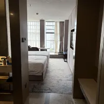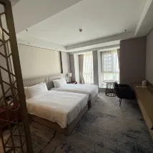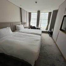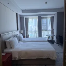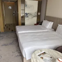 The room was clean and tidy, which was great. My only minor quibble was that the lighting felt a bit dim, even with all the lights on, haha. The service was also very good; a staff member even helped me find my room when I got a little lost. It was a bit of a bummer that food delivery wasn't allowed directly to the room, which was slightly inconvenient, but I suppose it's for safety, haha. The location was excellent; there's everything you need nearby. I was here for a concert, and the Wutaishan venue was incredibly close – I walked back! Overall, I was very satisfied.